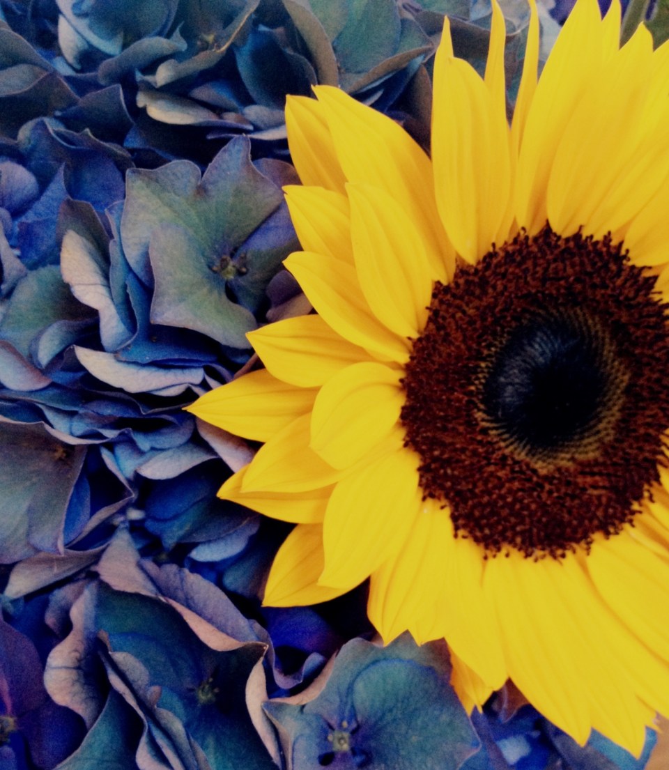 No one ever rings that bell except my family or our landlords so naturally the curiosity set in.. and it was……. my momma!! With a BIG bouquet of the most gorgeous flowers I have seen in a long time! Brilliantly blue hydrangeas and happy happy sunflowers. (I spent three months of our flower budget a while ago so I’ve been going through flower withdrawals ever since) She was coming back from Sonoma and decided, to our delight, to drop in! It was such a nice surprise – no one ever drops in unexpected anymore, it made our whole day!