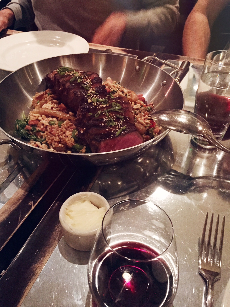 It was mighty strange to not have my little nugget near me and to have to beeeeeg her Grammy for just one picture.. video.. sound bite… ANYTHING ;) But I don’t think I realized how much we needed this trip. It was like someone hit the recharge button and we came back completely refreshed. I mean, how could you not with the spoiling that guy does. We had lunch pretty late – I think we ate around 4 and had dinner reservations at 8:45 (…hey look at us being real adults again! No 9pm bedtimes here!) So we moseyed about, had a lovely lunch, went to a tasting, charmed the couple next to us with our story of leaving our sweet three month old (oh and the Klein’s had just sold their house that day… but the real success was the infant leaving…), he bought us each a lovely bottle of wine in celebration, and we were off to a good start with our nice encounters and free stuff! When we got to the dinner place, they said they had about a 20 min wait which was fine – we’d grab a cocktail and hang out, no problem. It was getting later and later when the manager came over and said his apologies and offered to buy us another round of drinks for having to wait so long. Boom! More free booze. This was a good trip. I didn’t feel like it was long at all – especially since we had eaten so late, but in a few short minutes we were seated and served the most amazing foods I’ve tasted in a while!
