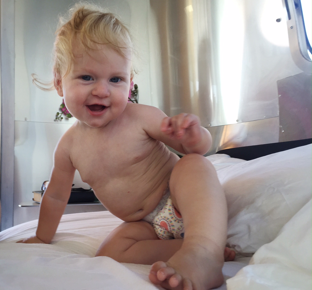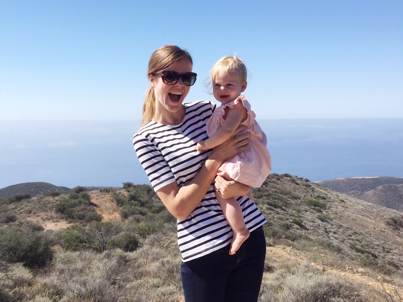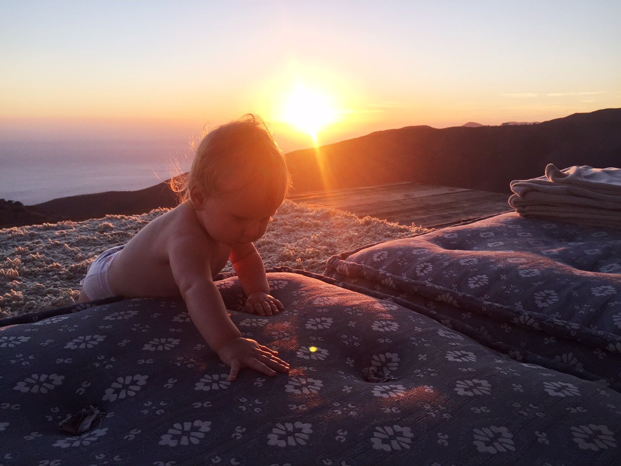 The place was an airstream perched on the cliffs above Malibu. The guy that owns it took off the side facing the ocean and replaced it with glass sliding doors which was, you know, awesome. We left them open all night and listened to the NATURE all around us whilst getting eaten alive by mosquitos but MY was it worth it. The weather was absolutely perfect – you didn’t even need a jacket! and we got to watch the most stunning sunset…. sooooooo dreammmyyyy except the crawling baby that was fascinated by the sheer drop on that deck there. She seemed so happy crawling all about and smiling at whatever she was smiling at. She’s the most curious little creature!