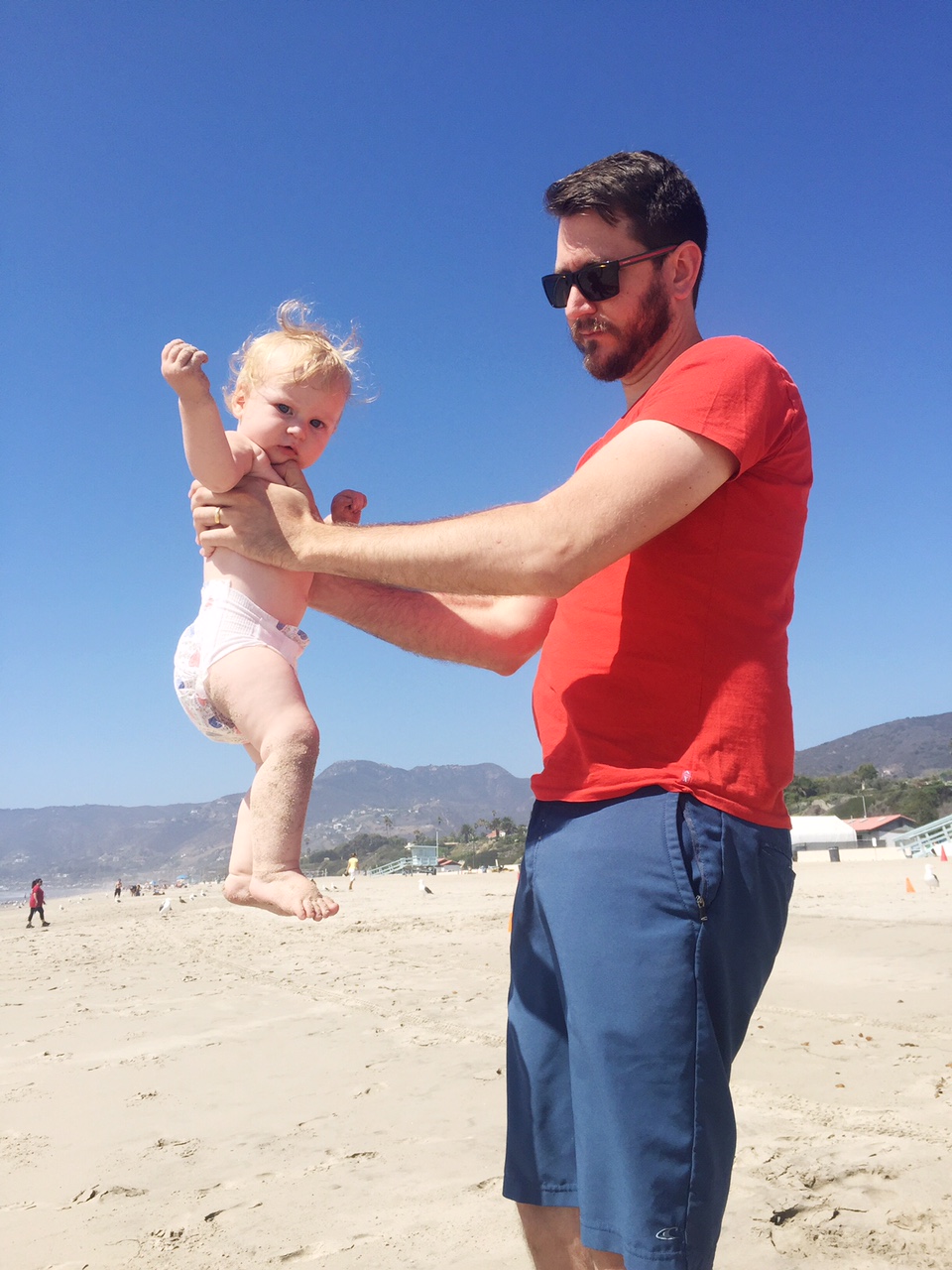 And then we took our token family selfie and headed down the hill. And in the interest of killing time, Greg performed the ultimate loving sacrifice and took a spontaneous trip to the beach with me. AND took care of a sandy baby!