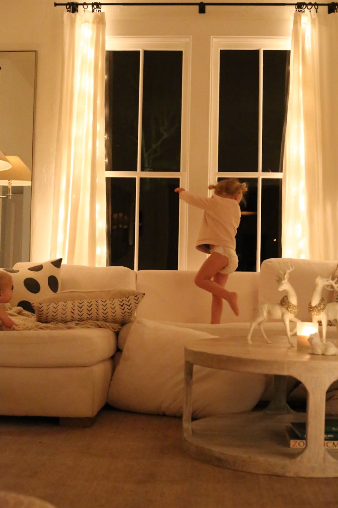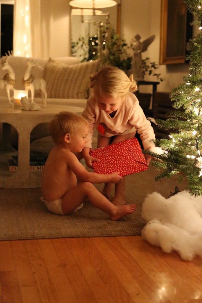 ^^right before dad would come home, the couch would turn into a playground, the ornaments would go missing, and the presents would be snuck into. But you just gotta love em.