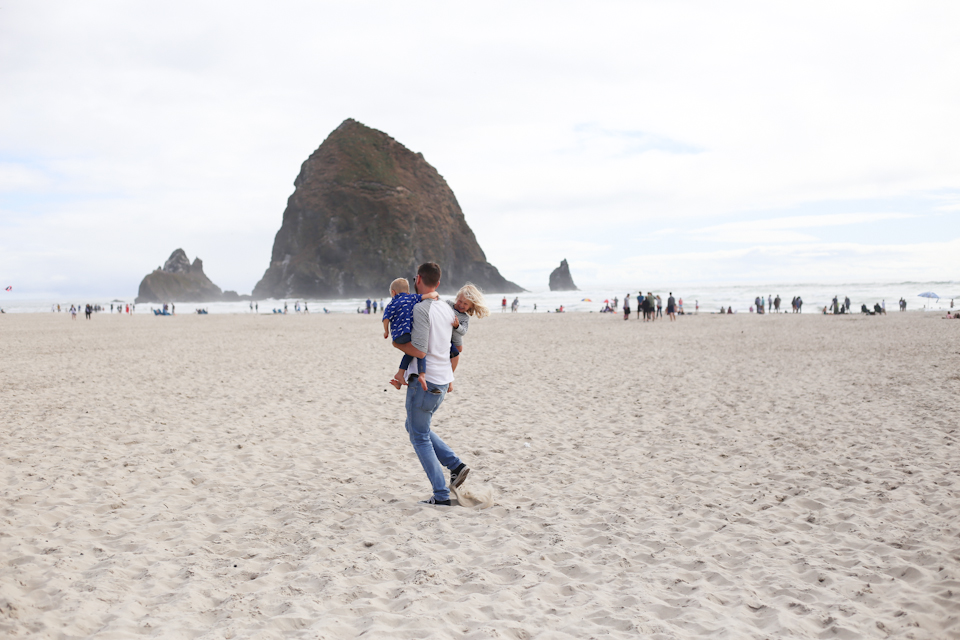 Well I guess we’ve gone camping as just our family but this was like a real stay-in-a-hotel-and-such family extravaganza! And we had the best time! I must say I was equally looking forward to and dreading this trip for quite some time. Something about 10hrs up and 11.5hrs back + eating most meals out with two squirmy hooligans is enough to give me the hot sweats. BUT they did amazing. Seriously… it was probably all the prayers I was begging strangers on the street to pray for us but by jove, they probably cried an hour total of the entire car riding experience – from Santa Cruz to Eugene to Seattle to Cannon Beach and over to Portland and back. That’s a lot of cooped up ness and they were seriously baby rockstars. And Luke, bless his soul, had to sit in his carseat for that first leg on his very special 2nd birthday. We sang him happy birthday as many times as we could fit in and despite being strapped in all the live long day, he really seemed to get that that day was a special day just for him. We made it up to Eugene in time to get him a cake and celebrate in the hotel with my folks. OKAY I said this was just a family trip but the first part was for my cousins wedding… AND THEN we broke off on our own and explored all them beautiful green states. So there.