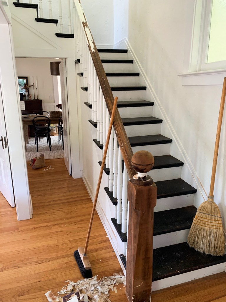 There was a chair that is not pictured but that is now infamous in our household. Is this another chair situation? he says. The story is, our house is very white. Too white. When we moved in we did not have much money and it was old and dirty and smelled so I bought a lot of the same white paint and went to town trying to freshen everything up. And it has stayed that way. And I always think, it’s too white. But I hate painting and I really do love the airiness of it… so I keep trying to think of ways to warm it up. Hence the “character chair” we shall call it. I thought, if we have a cool old chair, it will solve all our problems for the time being. So I found it. And it’s beautiful. And it’s from France from the 1800s and has cigarette burns all over it and is all things lovely… but while we were waiting for it to arrive, I started to look around. Our new pretty chair will feel so out of place in our stark white house! So I began to look for other things I can warm up… like this railing that was started in July and has yet to be finished. Cause my gosh that’s a long and messy project! And then the railing didn’t feel quite right so well then there was plastering to be done and then and then and then :D the chair.