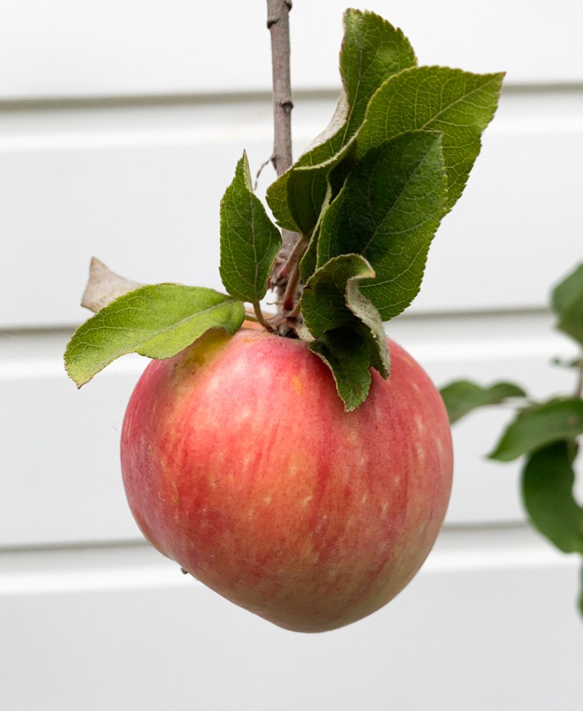 We got three apples and two pears off our fruit trees haha…